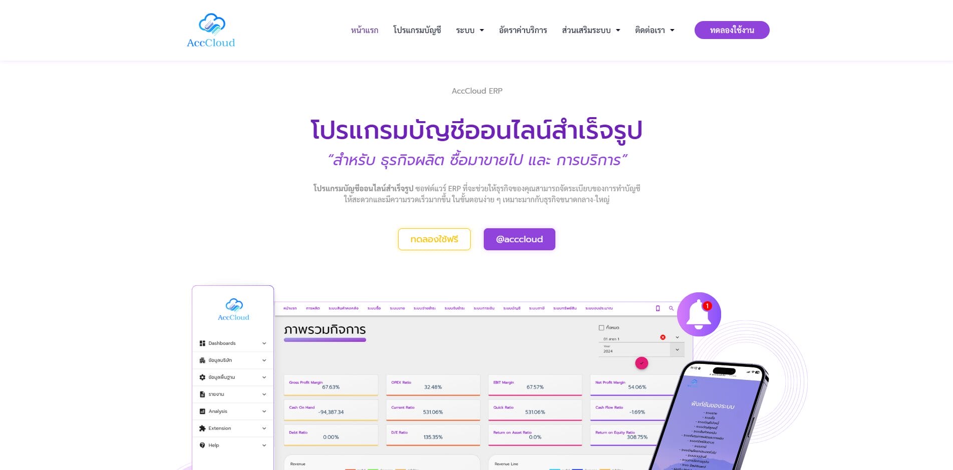 เว็บไซต์องค์กร ที่ให้บริการโปรแกรมบัญชีออนไลน์ AccCloud จัดการงานบัญชีแบบครบวงจร